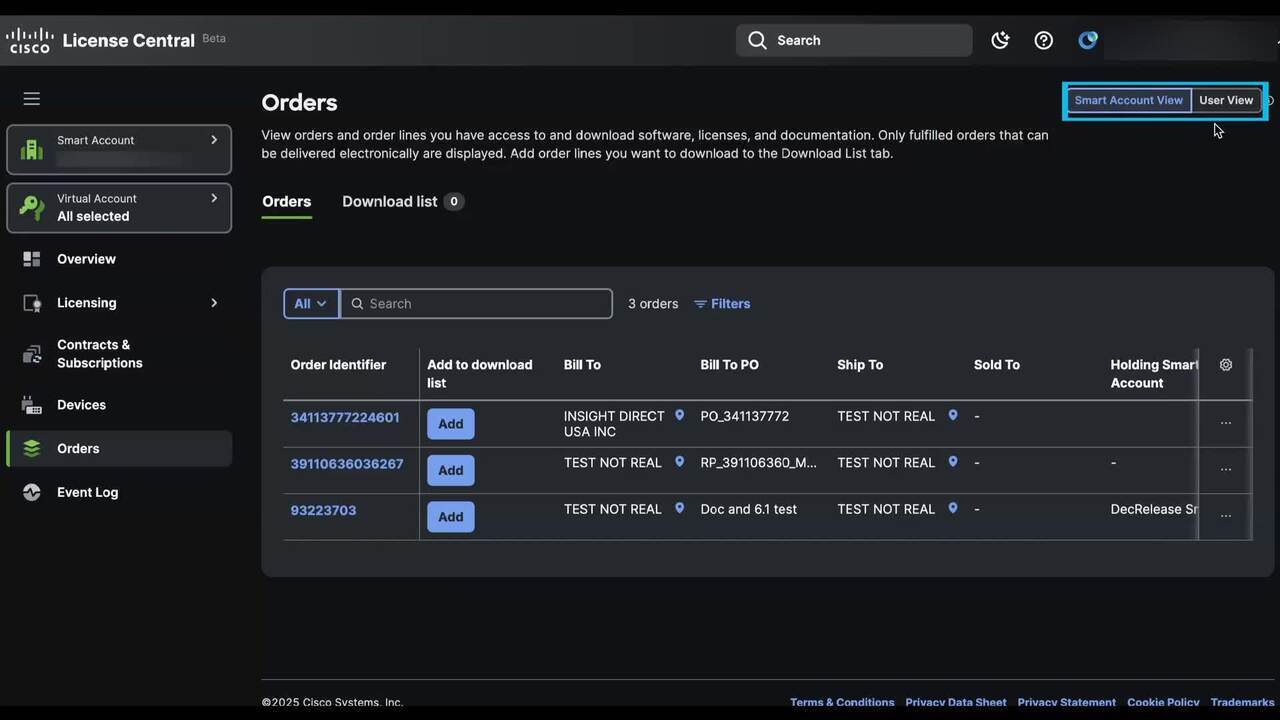 Find my order, in Cisco License Central (CLC)