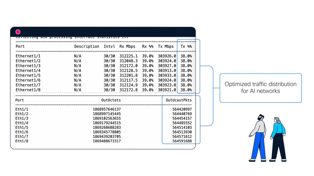 Cisco Intelligent Packet Flow uses real-time telemetry to dynamically balance traffic across AI fabrics. Learn how adaptive load balancing prevents hotspots, optimizes bandwidth utilization, and ensures consistent low-latency performance.