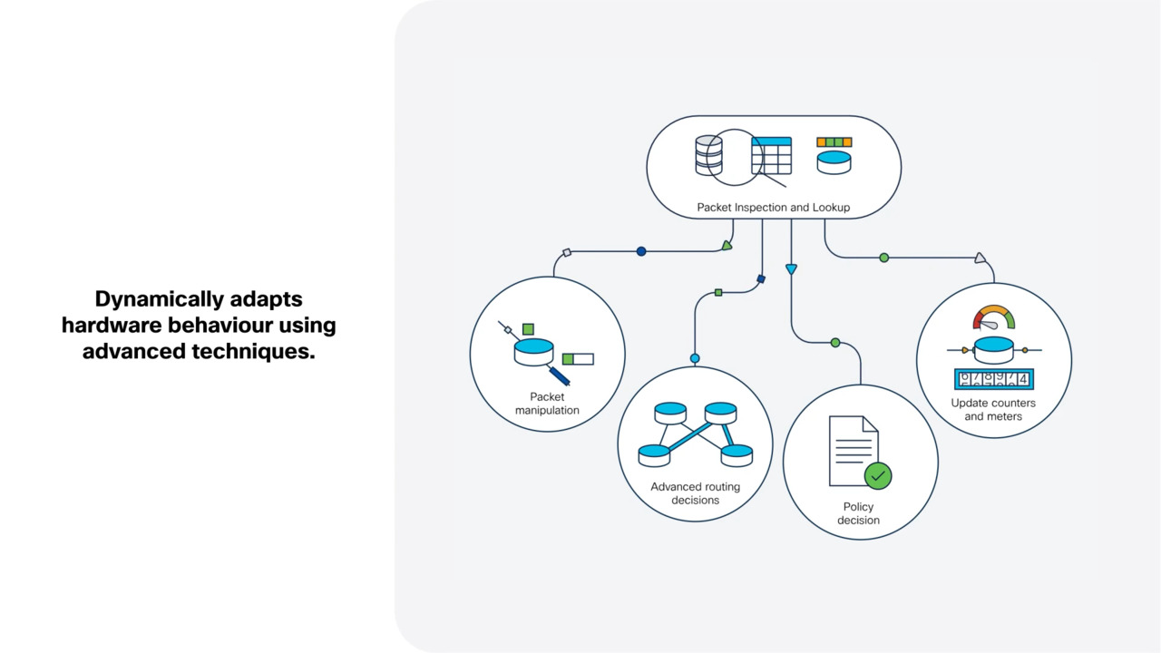 Cisco Silicon One uses P4-powered programmability to enable dynamic ASIC updates without hardware changes. Learn how packet inspection, traffic shaping, advanced routing, and real-time policy enforcement help networks adapt to evolving standards.