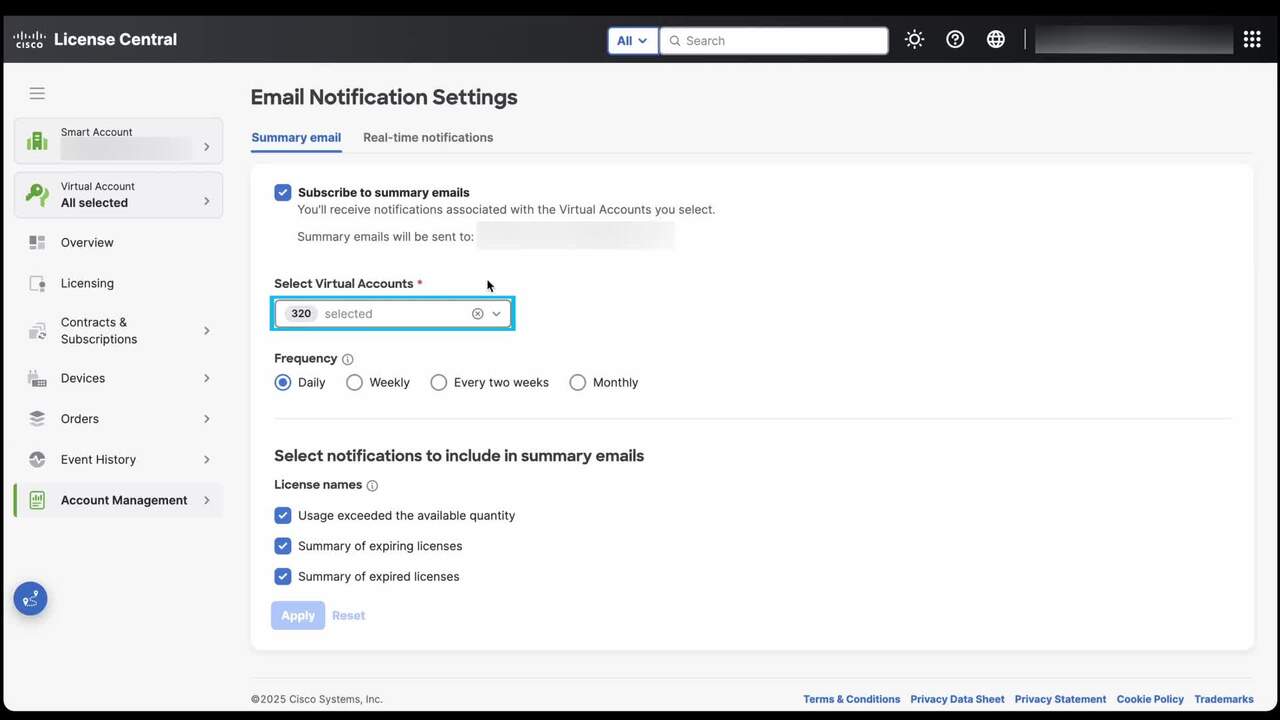 Start receiving notifications on licensing activities, in License Central(LC)