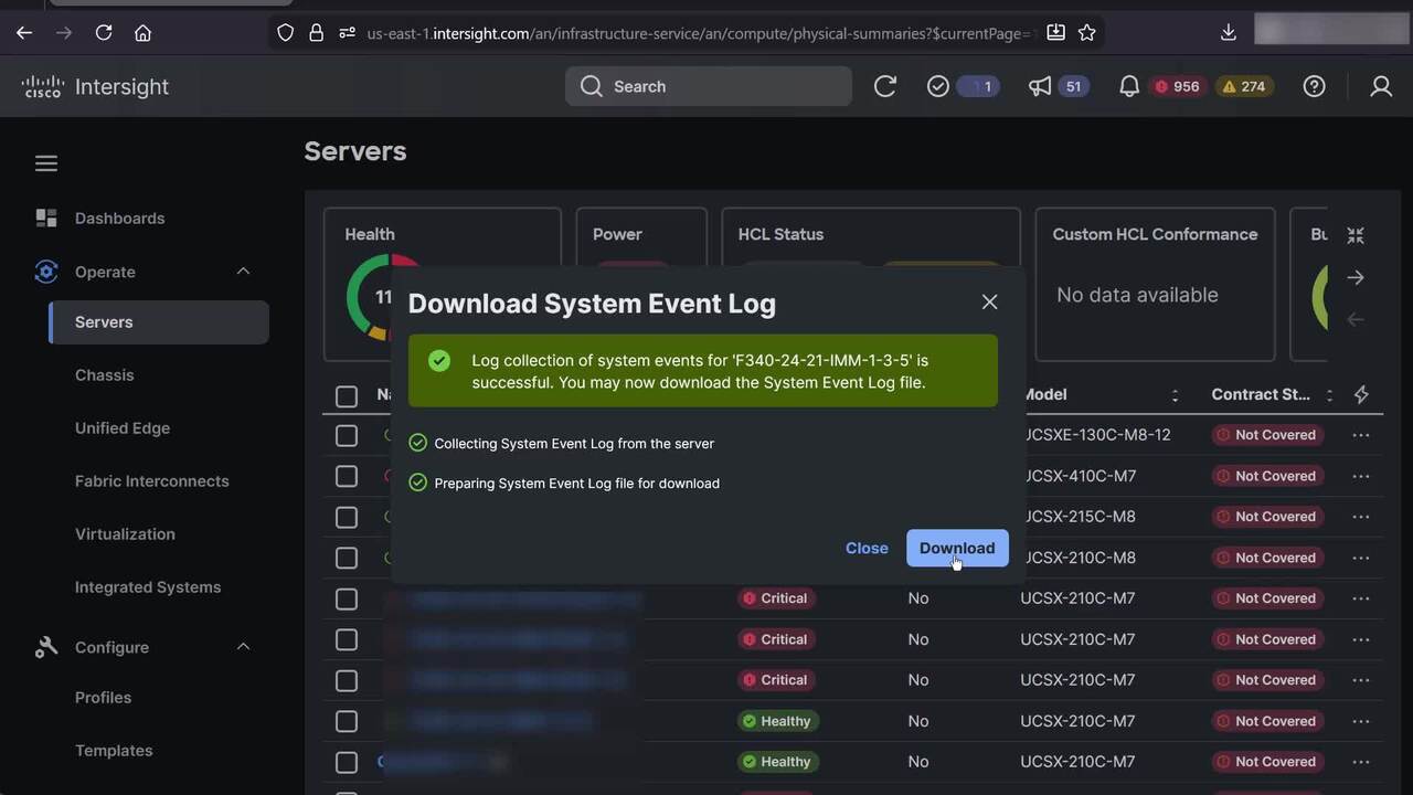 Demonstrate the process to download and clear system event logging for UCS servers in Intersight. #UCS #SEL #Logs #Download