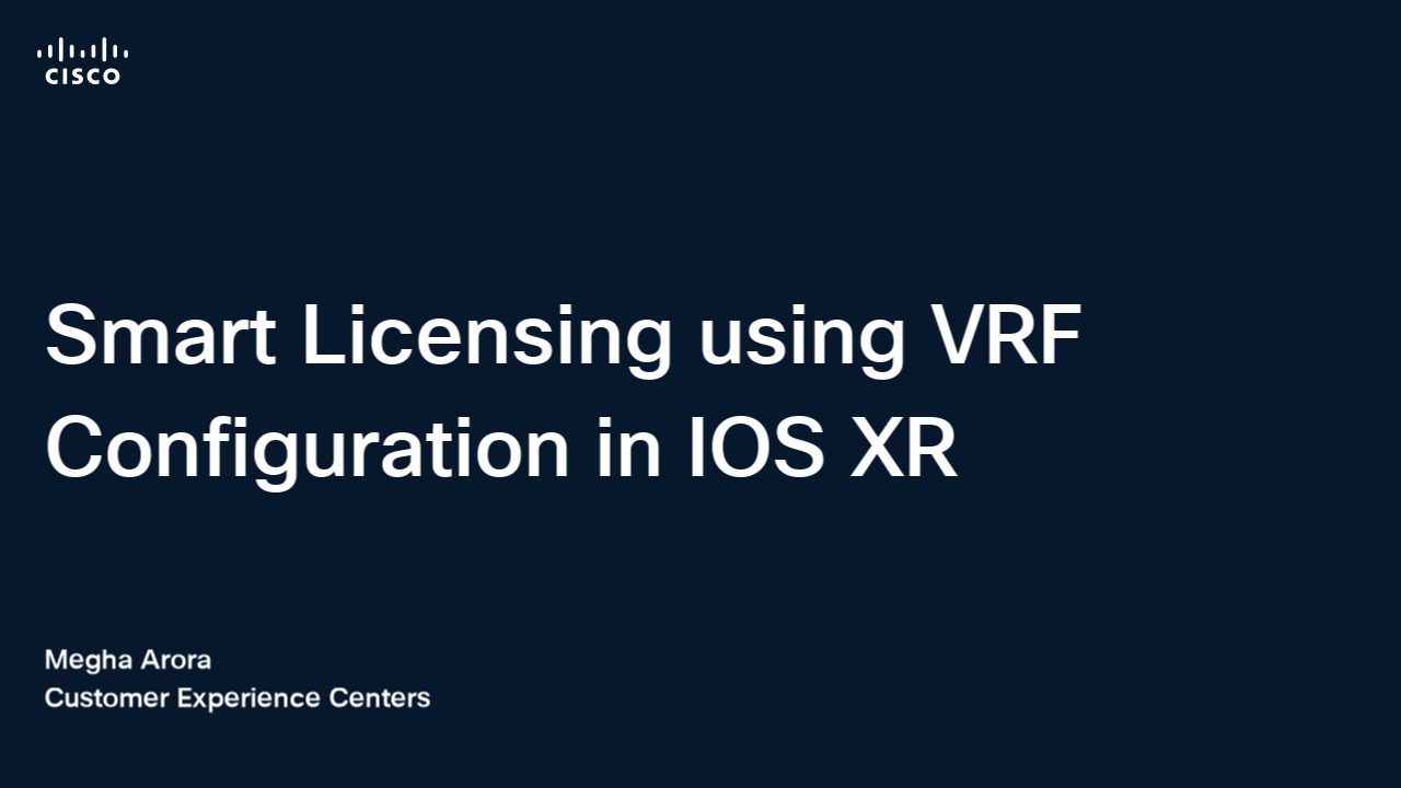 This video demonstrates configuration steps for smart licensing when a communication occurs within a vrf on Cisco XR platforms. Tags: smart, IOSXR